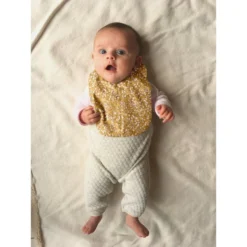 It accompanies babies throughout the day by protecting their clothes from drooling. The bandana bib, practical and adorable, will match all your baby’s outfits and will protect him outside of mealtime. With this original bib, say goodbye to wet clothes when he plays in his playpen or stroller.