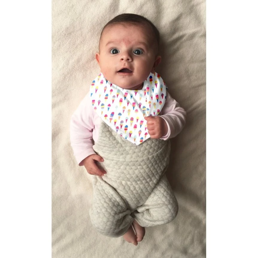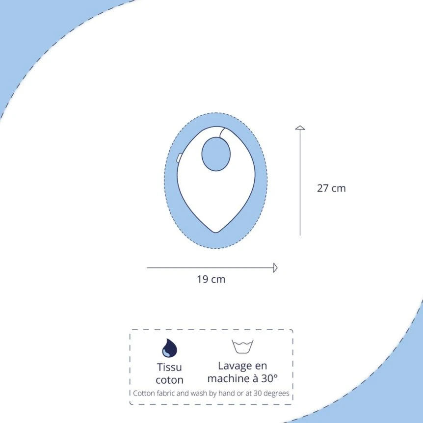 It accompanies babies throughout the day by protecting their clothes from drooling. The bandana bib, practical and adorable, will match all your baby’s outfits and will protect him outside of mealtime. With this original bib, say goodbye to wet clothes when he plays in his playpen or stroller.