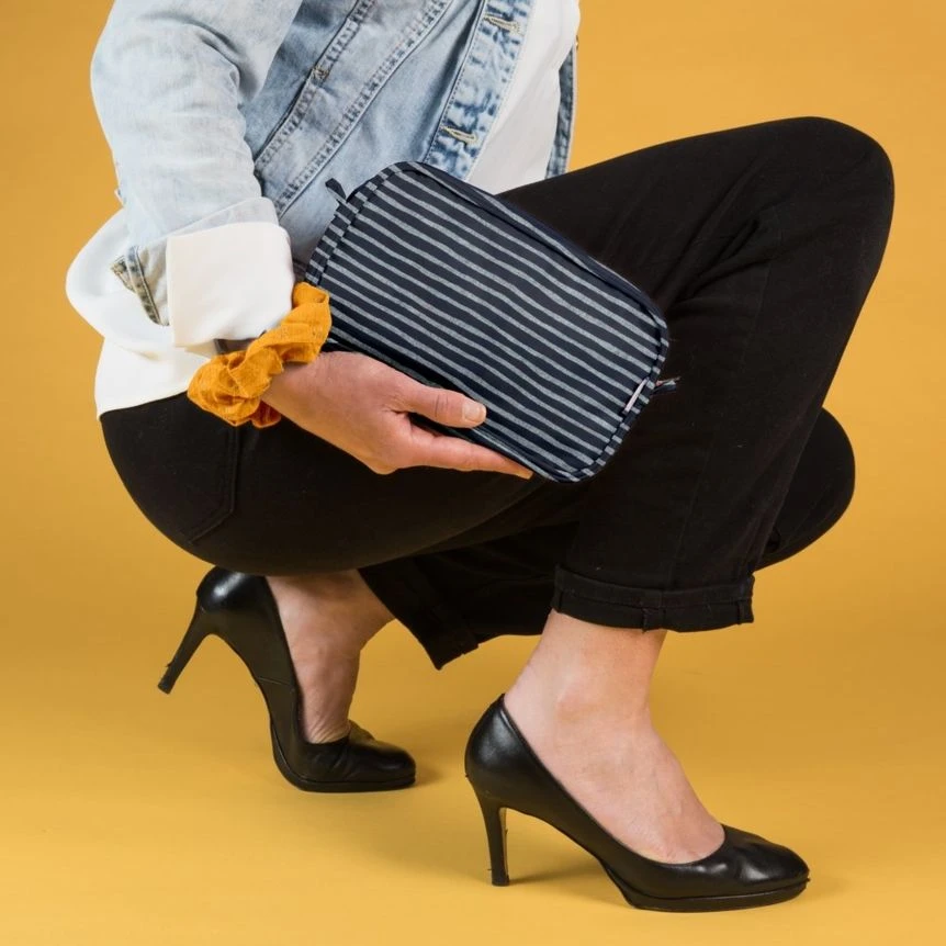 Iconic accessory of the 80s, the fanny pack is back on the scene. Thanks to its two large loops sewn on the back, you can easily hang your pouch on your belt. Worn on the hand, on the wrist with the small strap, the fanny pack also becomes a stylish and practical evening clutch.