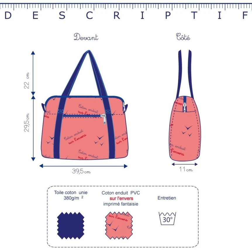 Our bowling bag will please you with its shape and its coated cotton. The bowling bag is the accessory that you will not know how to do without. This coated fabric bag allows you to have one bag for multiple uses. You can wear it on your shoulder, in your hand or with a shoulder strap to go away for a weekend for example. Our bowling bag is above all a nice and big handbag for women to take everywhere with you in which you can even slip your work stuff. Very practical when you have to run between the nursery and a client meeting! It can also be transformed into a school bag for high school or college students because with its A4 format it is adapted to notebooks, files, touch tablets and even a small laptop.