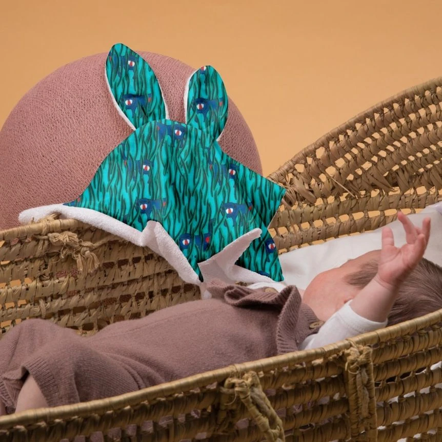 We love the softness of this rabbit blanket made of fabric and terry cloth – The ideal birth gift