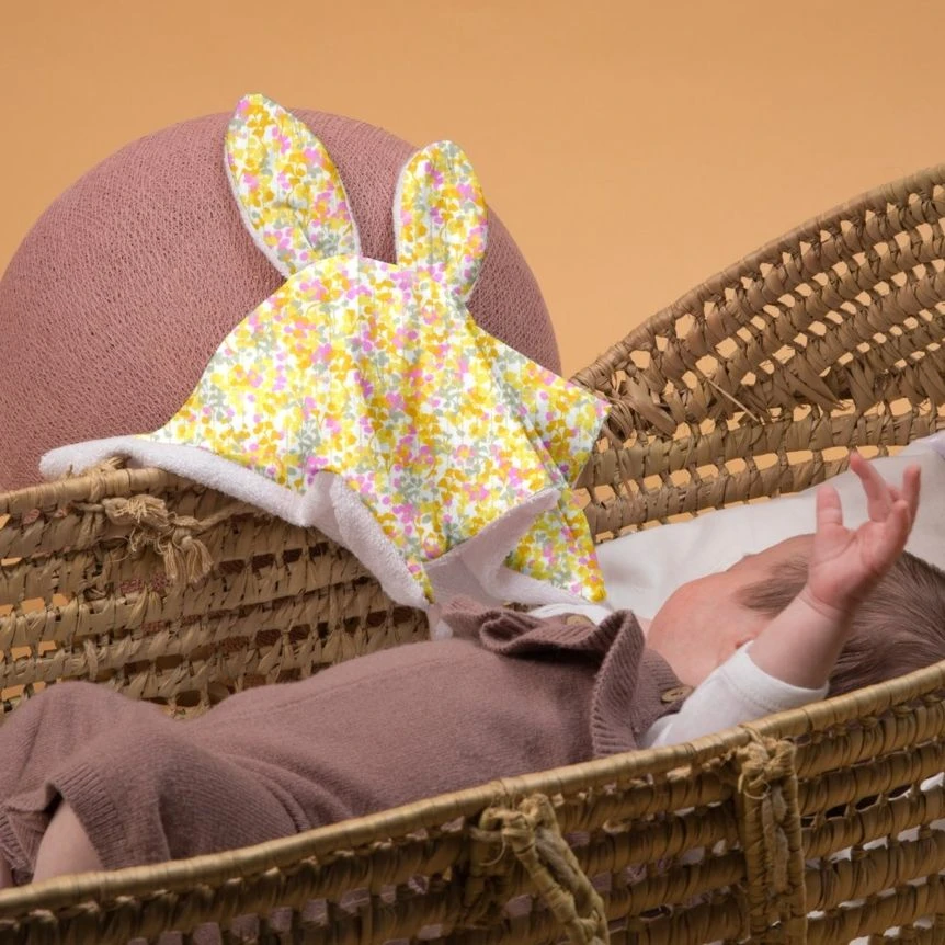 We love the softness of this rabbit blanket made of fabric and terry cloth – The ideal birth gift