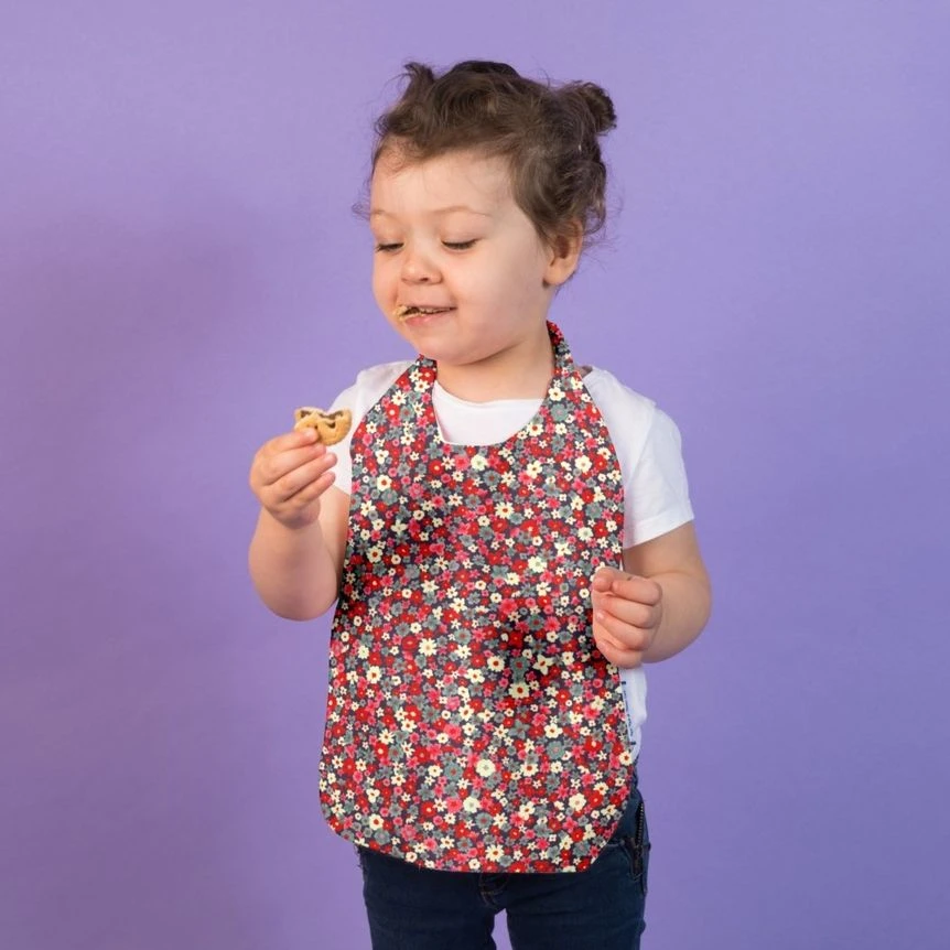 The fancy elastic towel for children Papa Pique et Maman Coud in cotton fabric is ideal to allow your children to access slowly to the autonomy during their meals. Lightweight, it slips easily into a small backpack and hangs around the neck with its elastic. It has been designed to be wider at the bottom to avoid any risk of spilling onto clothes.