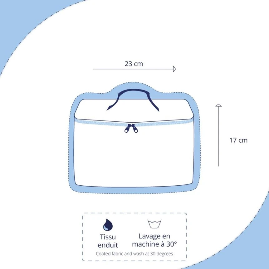Made of coated cotton, it is soft and waterproof which will avoid spills in your travel bag or suitcase. Composed of 7 compartments, one central and 6 others around, the PPMC large vanity is perfect to store your hygiene products. The little extra is the flap of this small luggage that contains a pocket with a closure to slide toothbrush, toothpaste and first aid kits (bandages, medicines …) With the large Vanity, no need to accumulate the different kits, you can store a maximum thing in one. It’s the practical little bag for the whole family!