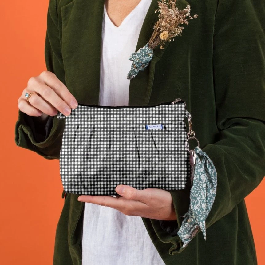 Pouch, bag or shoulder bag! Use the Papa Pique and Maman Coud pleated pouch as you wish. These little pleats on the sides give this clutch a crazy charm. Perfect for traveling and storing your toiletries, this large pouch (15.5 x 20 cm) can also be worn as a shoulder bag with our large matching straps or even on the shoulder as a handbag with a small PPMC strap. It’s a bag accessory that you can turn into a clutch bag and take everywhere. Â